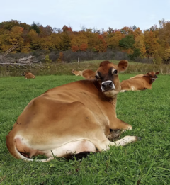 Sarah Ficken works in the dairy industry both as a farmer and as program manager for a diary training program in New York (NY). She is also on the leadership team for the Dairy Climate Adaptation and Mitigation Fellowship (Dairy CAMF). Even as a member of the Dairy CAMF leadership team, Sarah still learned a great deal about how to prepare her farm for extreme weather events. Sarah and her husband, Chris, run a first-generation farm, New Moon Farmstead, in Munnsville, NY. Their farm is highly diversified, featuring dairy, beef, pigs, chickens, and additional livestock. Since 2023, Sarah and Chris have primarily focused on beef rather than milk production, but hope to resume milk production in the spring of 2026.